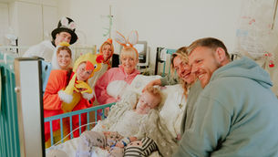 In liebevollen, aber kindgerechten Kostümen besuchen wir gemeinsam mit unseren Ehrenamtlichen und prominenten Botschafter*innen die Patient*innen direkt auf den Stationen.